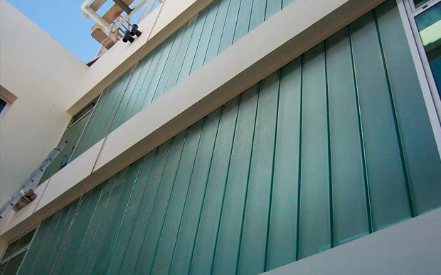 Descripción: Su resistencia por forma permite su instalación en vanos, con una gran luz vertical, sólo soportado en sus dos extremos opuestos. Su montaje puede ser realizado en línea recta o curva, en forma de simple o doble piel formando una cámara de aire entre ambos.